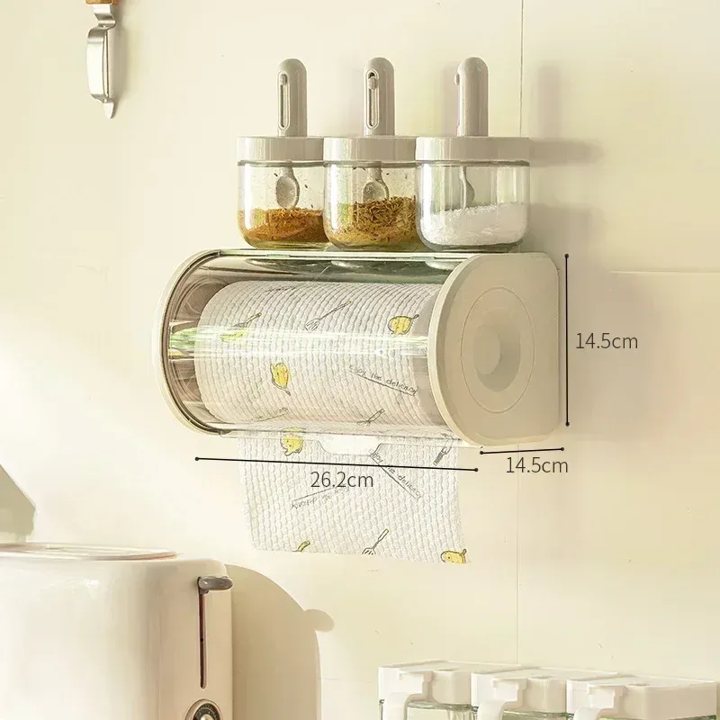 【 Introduction 】: (1) Dust proof kitchen tissue storage box, made of high-quality materials, with two colors available. Dust proof storage with lid, clean and hygienic kitchen tissues. Non marking and nail free installation. Wide applicability in large spaces, suitable for a variety of tissues. Multi directional installation allows for flexible utilization of space.