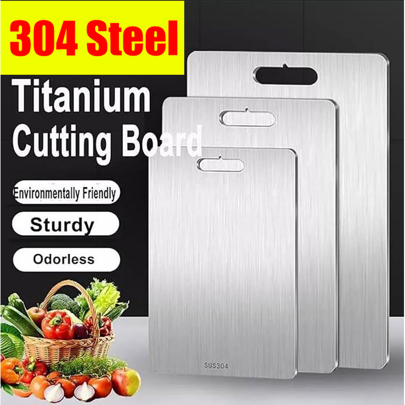Titanium Cutting Boards for Kitchen Stainless Board 304 Steel Thickened Double Sided Food Grade Portable Fruit Meat Chopping