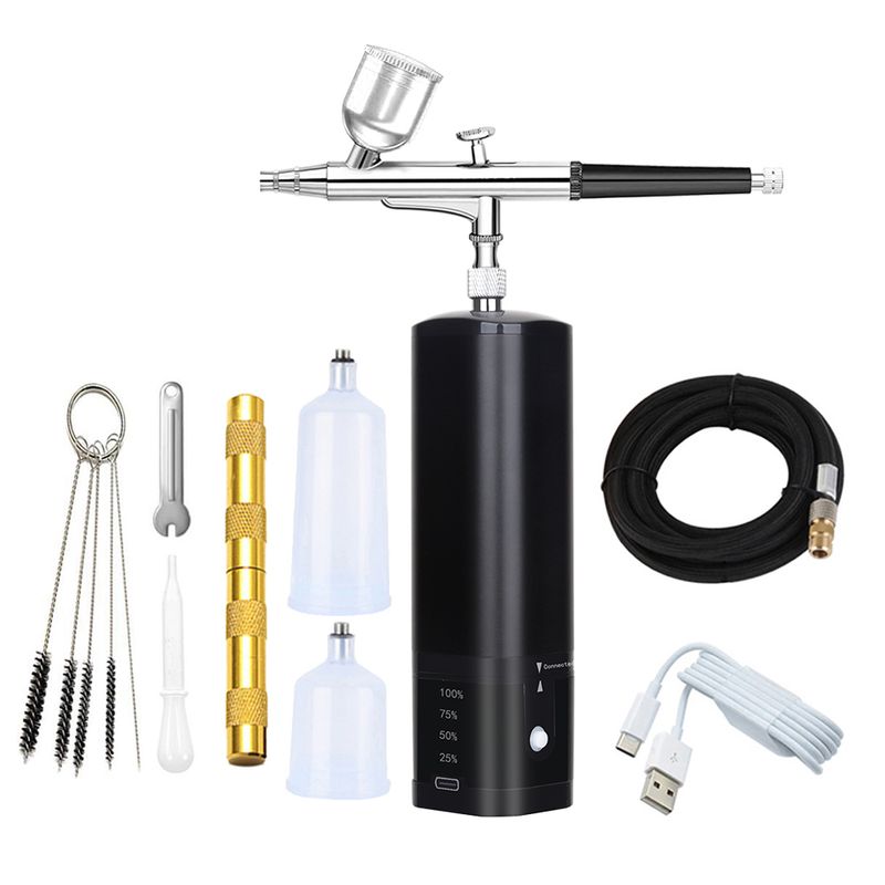 Portable cordless airbrush kit can be used for cake decorating, makeup, nails design, tattoo, model painting, art painting, handicraft and so on.
