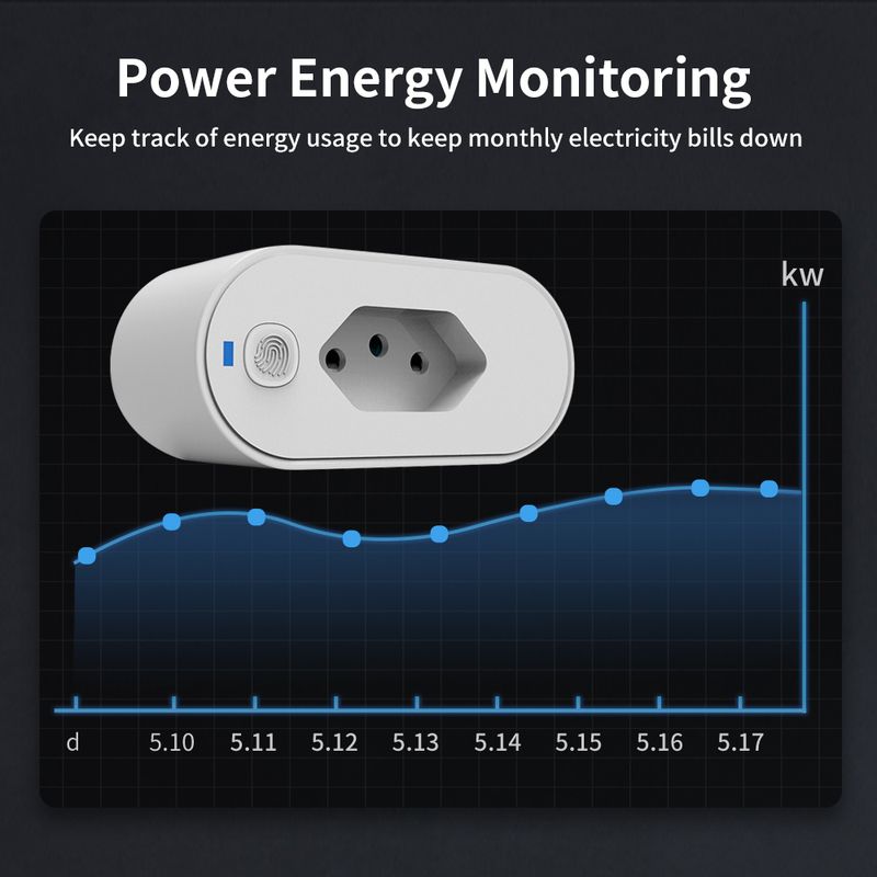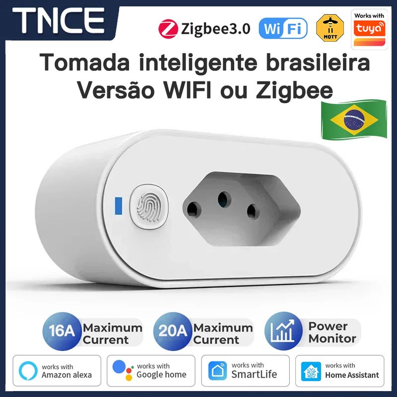 TNCE Tuya Brazil Plug 16/20A adapter, WIFI or zigbee3.0 socket with Power Monitor, Smart outlet control, Voice Google Home Alexa