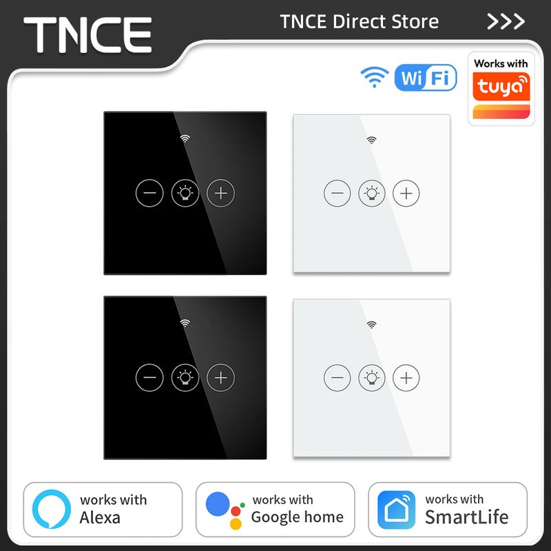 TNCE Tuya WiFi Smart Dimmer Switch EU Smart Glass Panel Wall Touch Switch Smart life APP Control Works with Alexa Google Home
