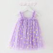 【Fashion Design】Toddler girls sleeveless birthday party dress, elastic spaghetti strap top with fluffy tulle skirt, stylish flower embroidery print, layered and mesh tulle fluffy design, simple and lovely style of skirt, make your little fairy look more sweet and pretty!