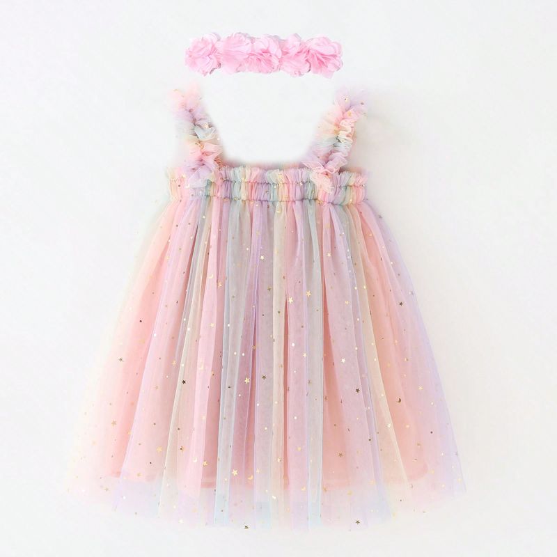 【Package Included】1 toddler tulle dress+1 flower headband.This is the best gift for your little girl.Wash with gentle cold water, no bleach, hang or line dry.