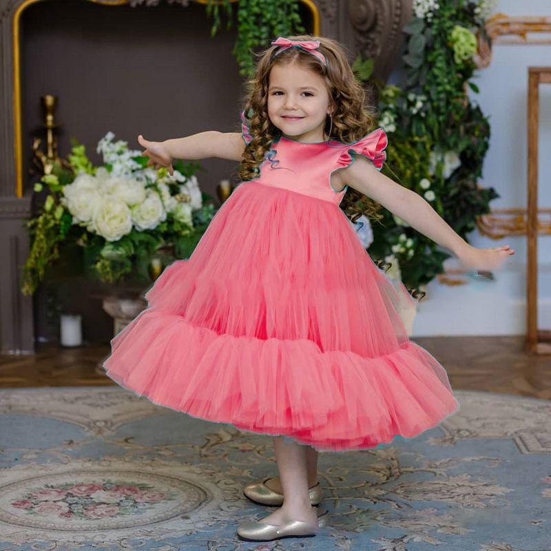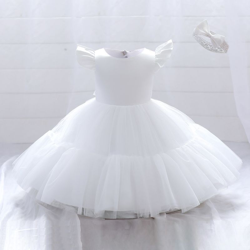 Toddler Baby Wedding Girl Dress Fluffy 1st Birthday Party Lace Princess Dress Children First Communion Bow Clothes Gown Vestidos