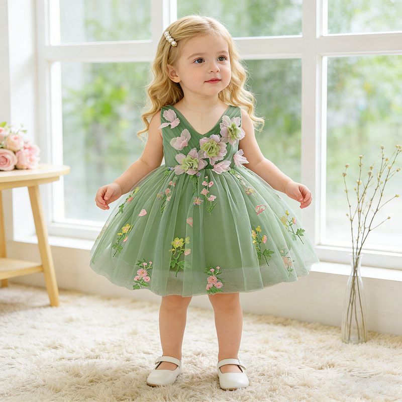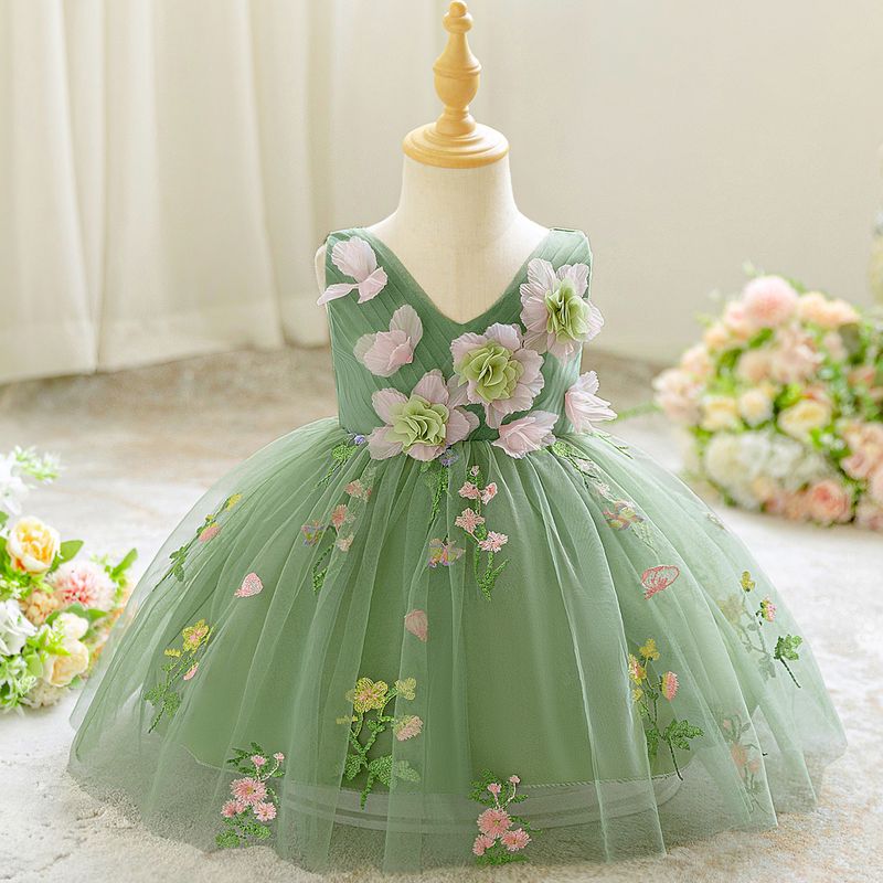 Toddler Bridesmaid Flower Party Baby Girls Dress Toddler Lace 1st Birthday Princess Dress Girl Wedding Baptism Evening Prom Gown