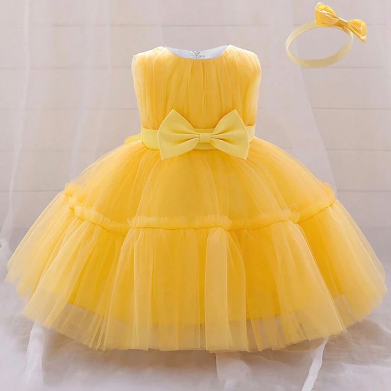 Toddler Bridesmaids Party Baby Girls Dress Infant Bow Baptism 1st Birthday Princess Dresses Baby Girl Wedding Evening Prom Gown