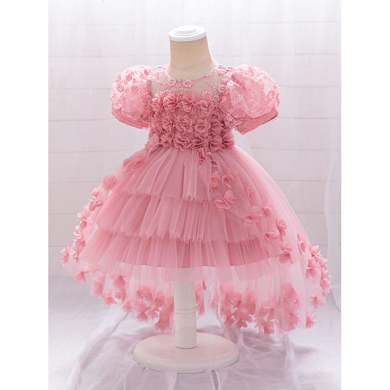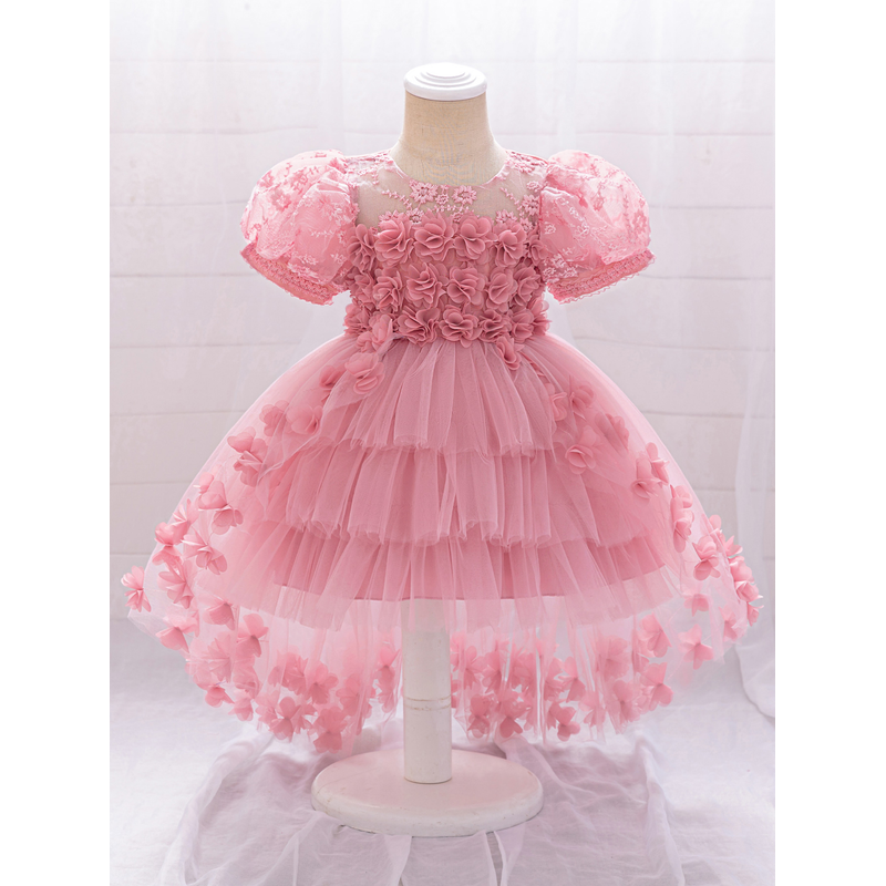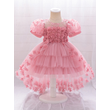 Toddler Girls 1st Birthday Princess Dresses Puff Sleeve Trailing Flower Girl Dress Tulle Puffy Baby Party Wedding Ball Gown 0-3Y