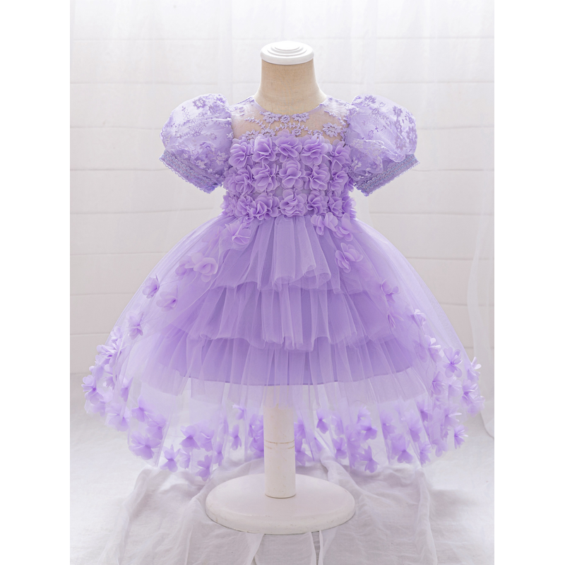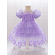 Toddler Girls 1st Birthday Princess Dresses Puff Sleeve Trailing Flower Girl Dress Tulle Puffy Baby Party Wedding Ball Gown 0-3Y