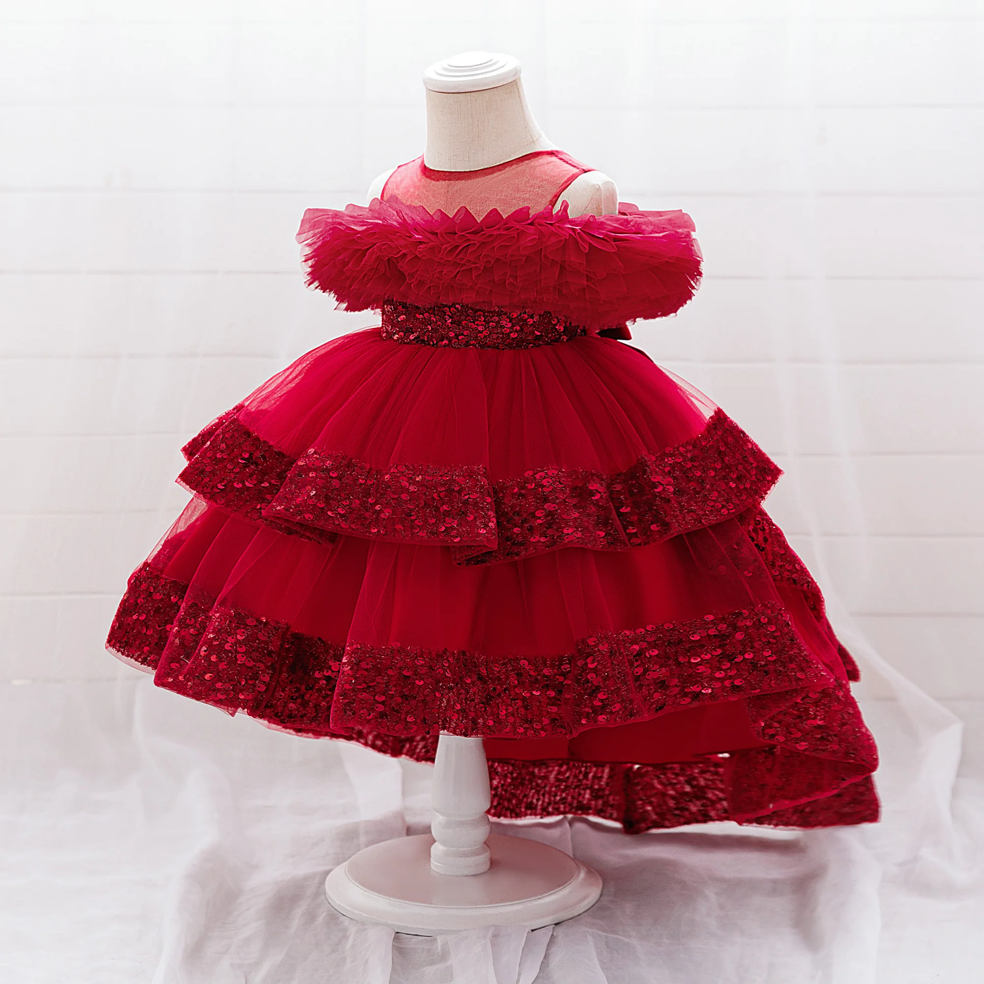 Toddler Sequin Party Baby Girl Dress Christmas Costume Elegant 1st Birthday Tailing Wedding Bridesmaid Princess Prom Dress Girls