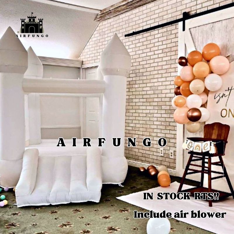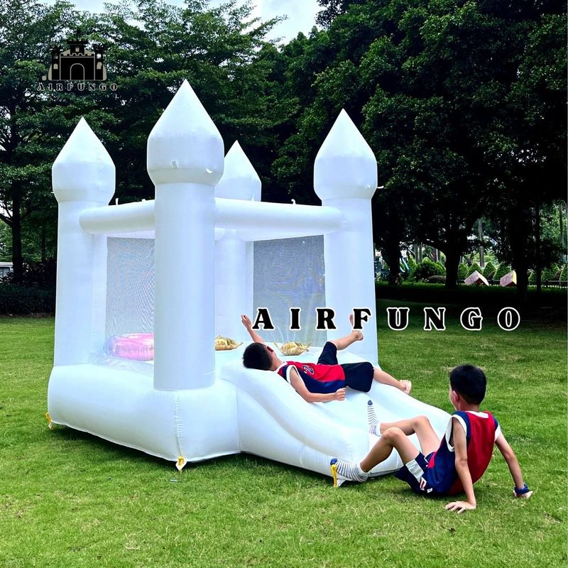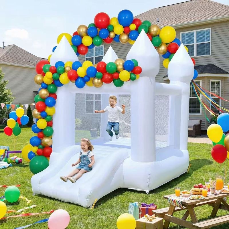 Toddlers Party 9x7x6ft Inflatable White Bounce House With Slide Customization Oxford Bouncy Castle To Door Include Blower