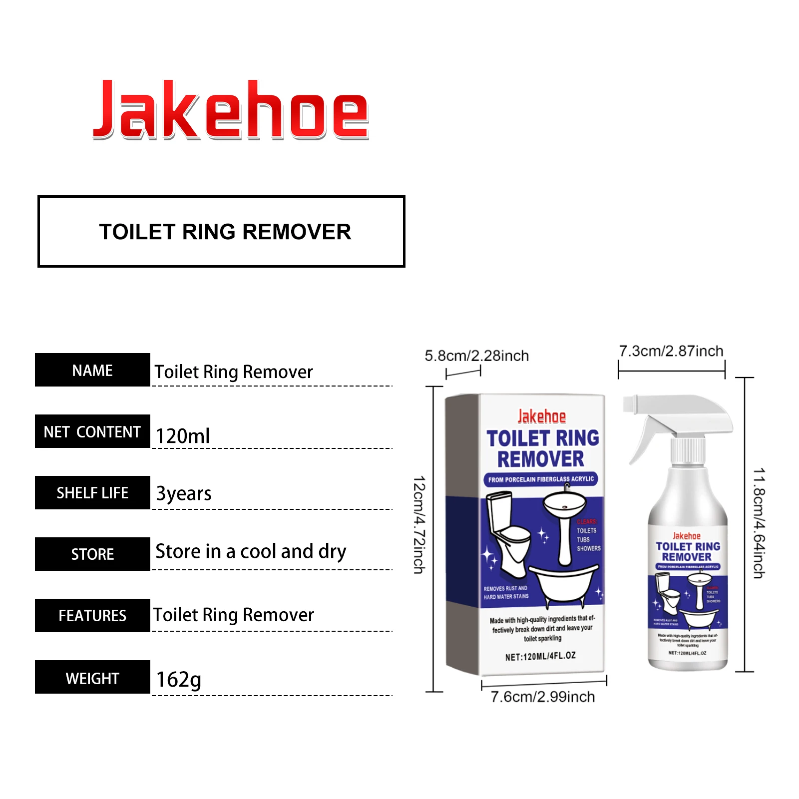 JAKEHOE ï»żToilet Foam Cleaner Efficient Removing Urinary Scale Eliminate Odors Restoring Toilet Shine Toilet Descaling and Cleaning Agent 120ml Boxed