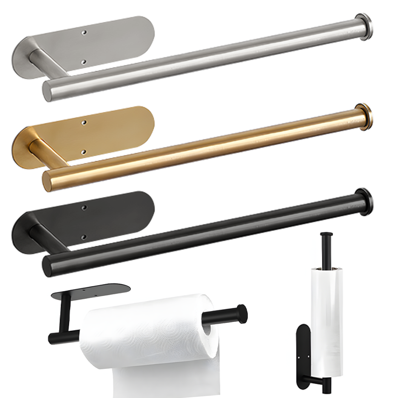 【Easy to Install】Our stainless steel paper roll holder comes in two different models, long and short, the long model can be installed with screws, for smooth surfaces (tiles, concrete surfaces, glass), press it for about 20 seconds then wait for 24 hours, anyone can install the self-adhesive paper towel holder effortlessly.