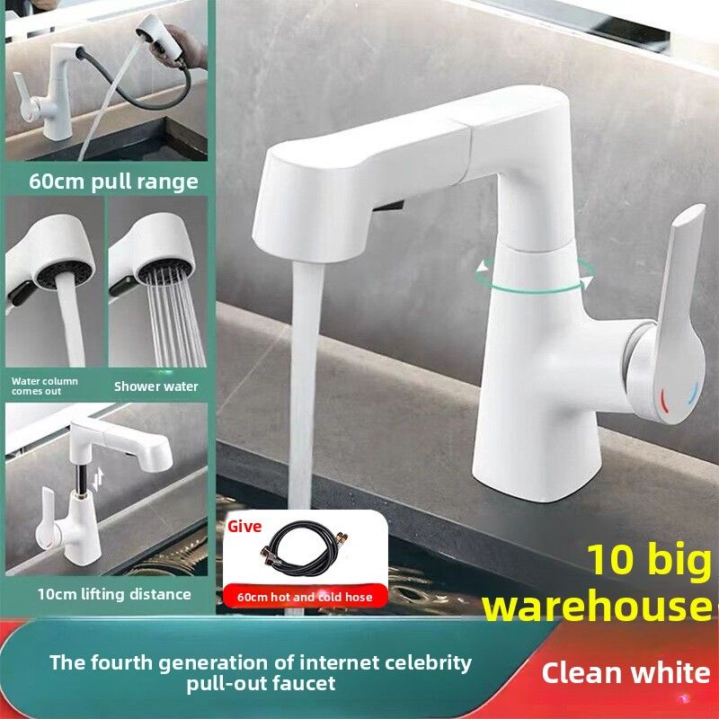 Toilet pull-out bathroom sink faucet, hot and cold faucet, adjustable washbasin, splash proof basin faucet