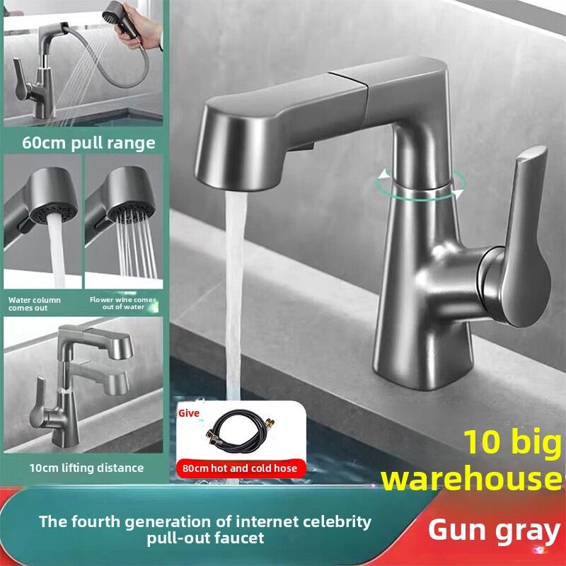 Toilet pull-out bathroom sink faucet, hot and cold faucet, adjustable washbasin, splash proof basin faucet