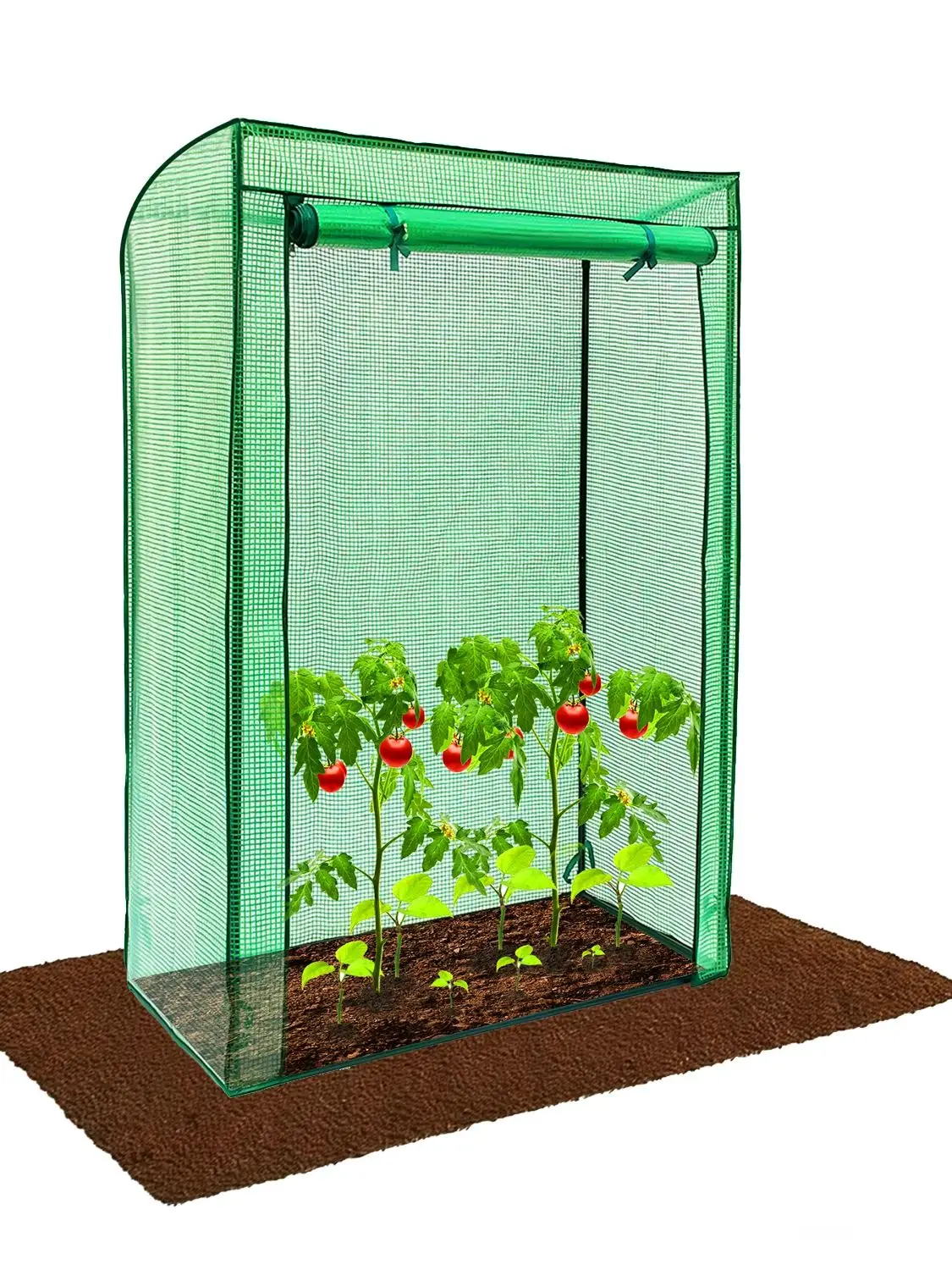 Tomatoes are easy to reach through the large roll up door with 2 zippers
