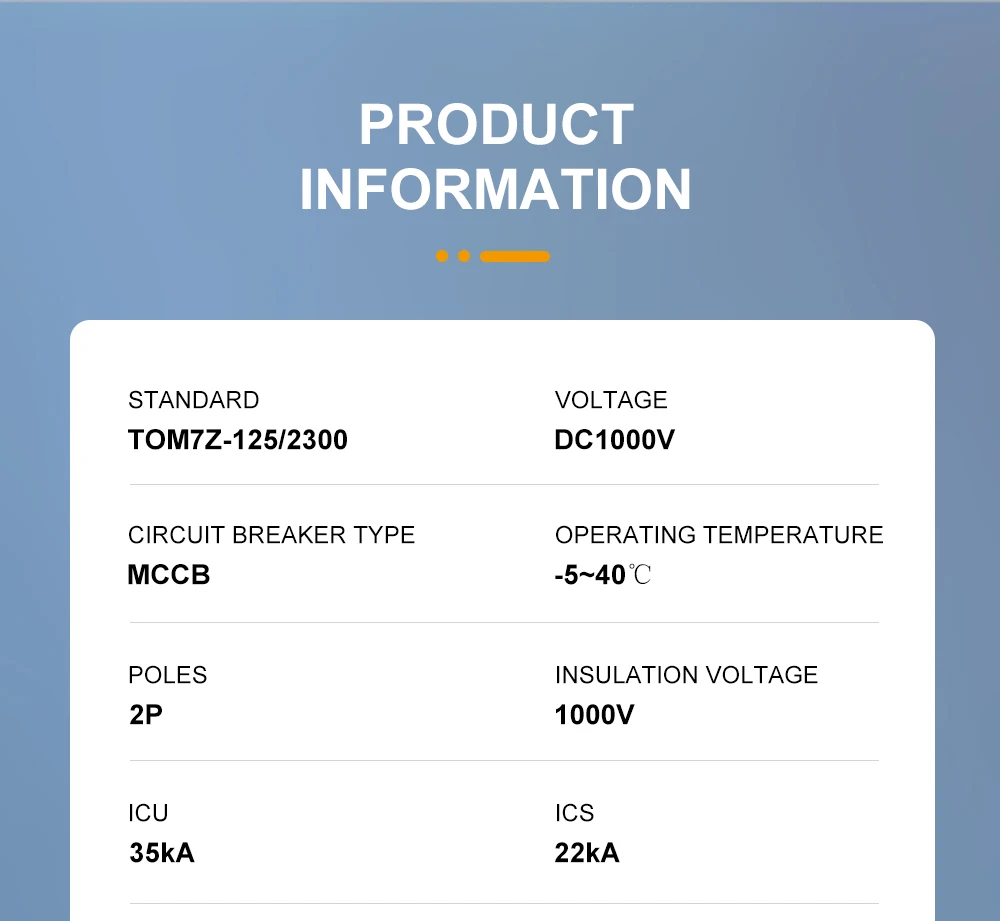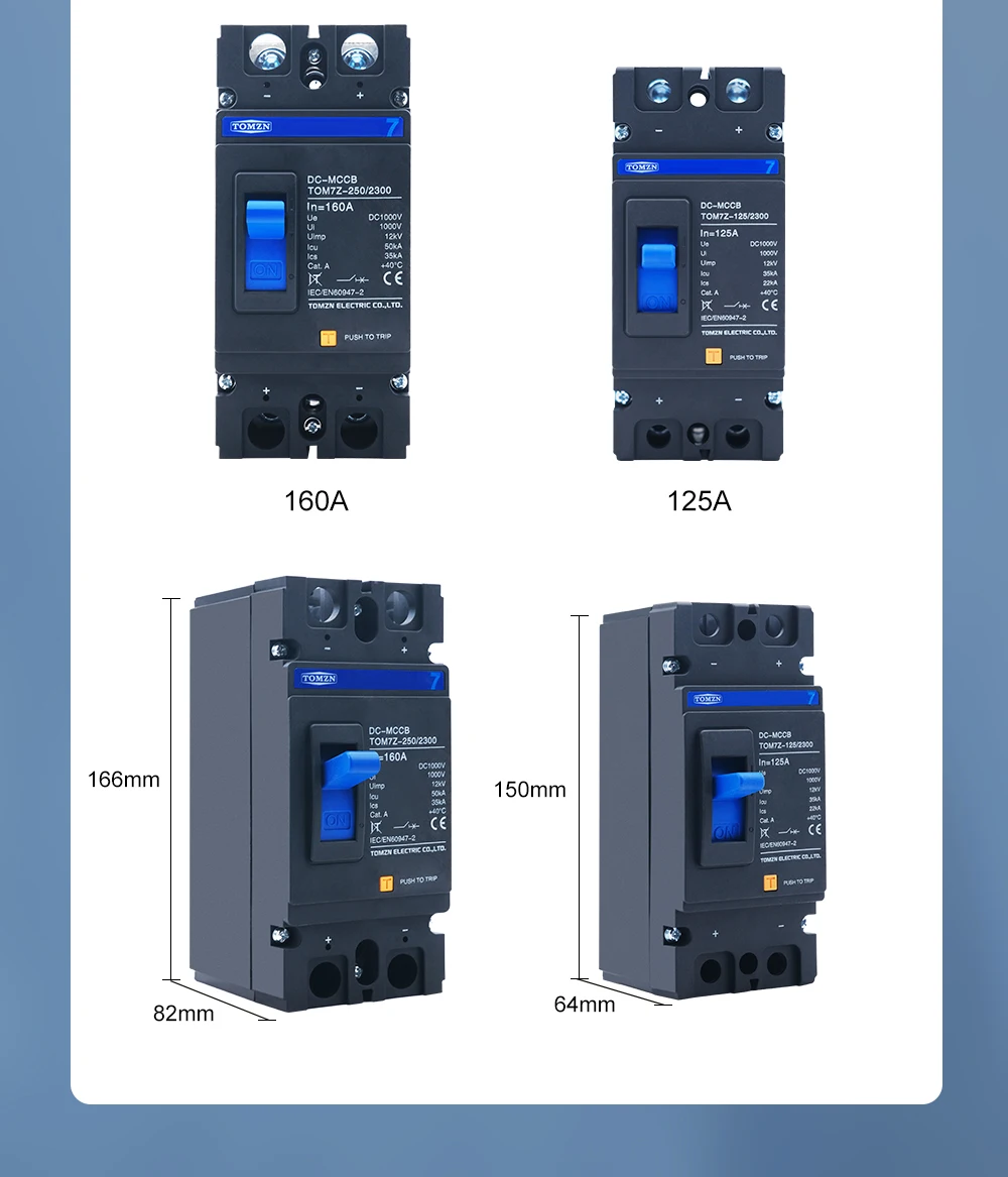 TOMZN 2P DC 1000V MCCB DC Solar Molded Case Circuit Breaker MCCB Overload Protection Switch Protector for Solar Photovoltaic PV