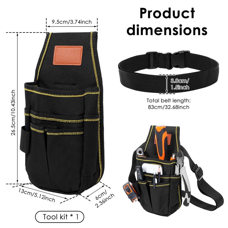3.【 Belt and Securing Design 】Equipped with a detachable and adjustable wide waist belt (3 .8 cm / 1 .5 inch wide) for stable wear and preventing slipping . Inside , it has straps and safety buckles to firmly secure your tools , preventing them from shaking or falling , especially suitable for high altitude or mobile work scenarios