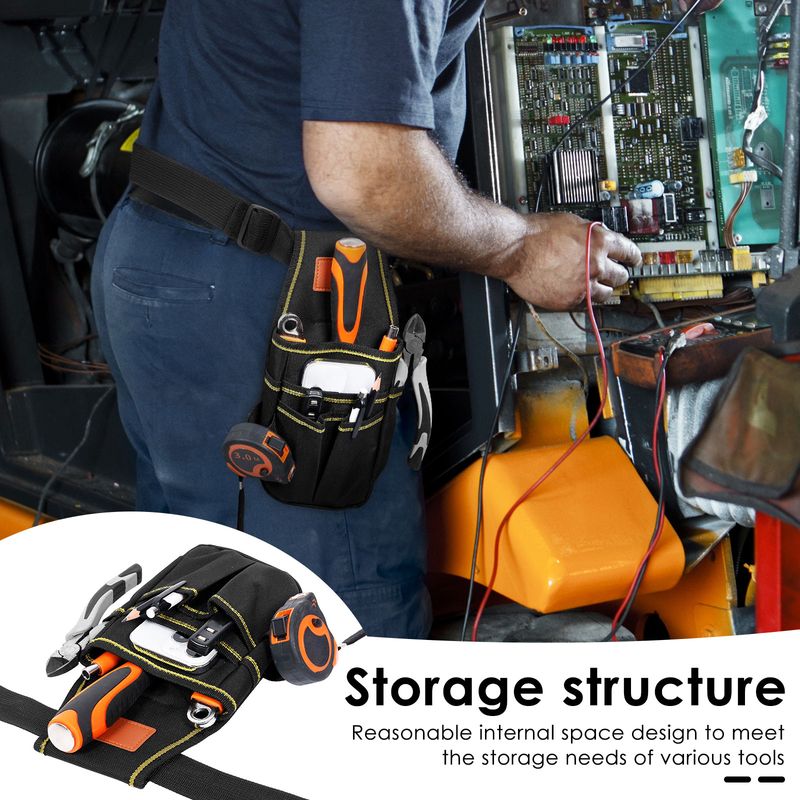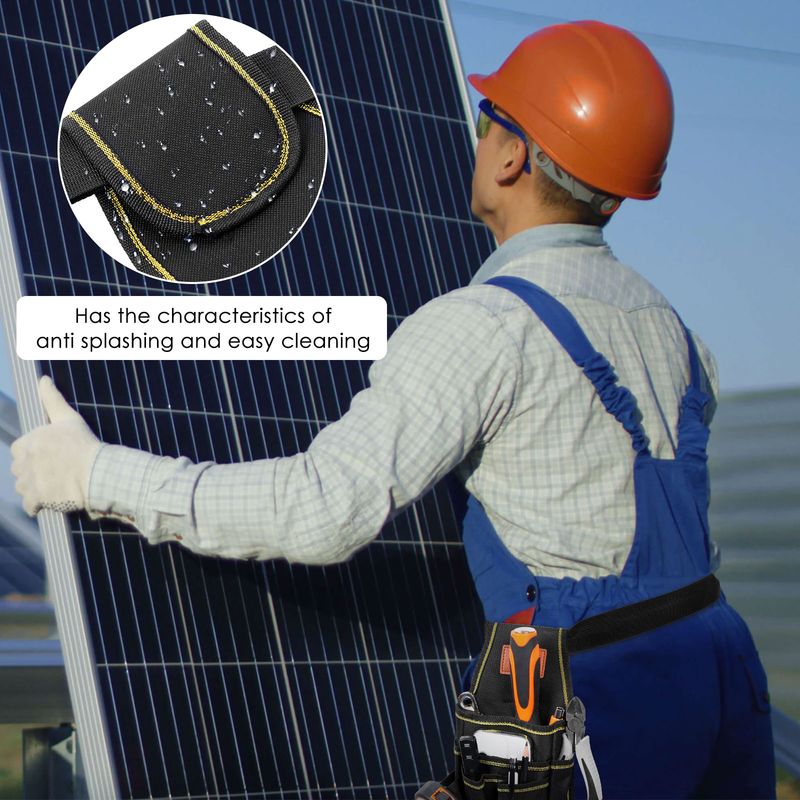 2.【 Material and Craftsmanship 】Waist tool bag is made of thick double layer Oxford cloth , which is water resistant and easy to clean . With tight stitching , it is wear resistant , scratch resistant , ensuring that the tool bag can withstand frequent use without damage