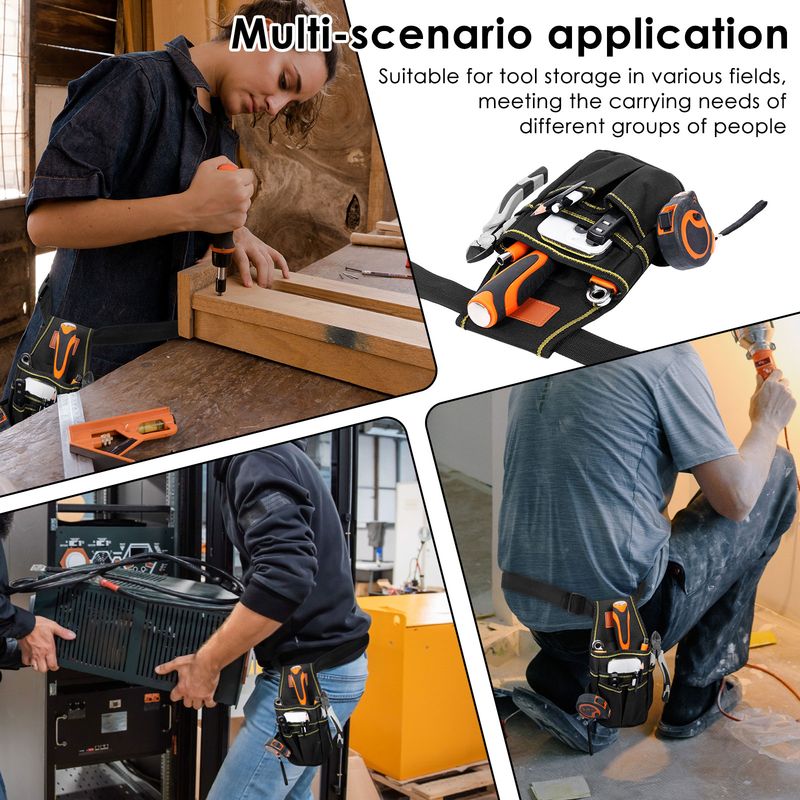 5.【 Applicable Scenarios and Users 】Suitable for carpenters , auto mechanics , electricians , roofers , construction workers , painters , and decorators for tool storage . Whether for work at a fixed location , outdoor repairs , or high altitude tasks , this waist bag provides a safe and convenient tool storage solution
