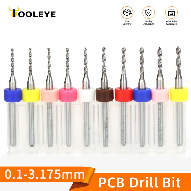 TOOLEYE 10pcs PCB Drill Bit Set Micro Drills Printed Circuit Board 1/8" Shank Mini CNC Drill Bits 0.1-3.175mm Drilling Tools