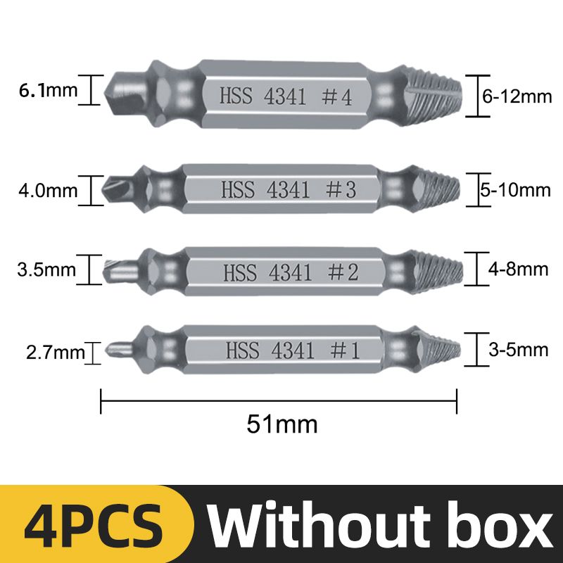 -- The Removal Drill Is Specially Designed For Slipping Or Broken Screws. The Stuck Or Rusted Screws Need To Be Operated Together With The Hand Drill, And The Speed Should Be Slow, Not Too High Or Suddenly Accelerated. The Whole Process Needs To Be Reversed. Opening One End First And Then Taking The Other End Out Has A High Success Rate.