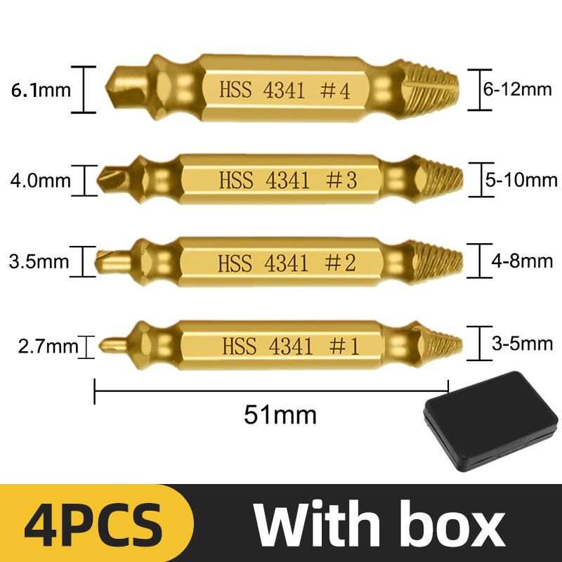 -- The Removal Drill Is Specially Designed For Slipping Or Broken Screws. The Stuck Or Rusted Screws Need To Be Operated Together With The Hand Drill, And The Speed Should Be Slow, Not Too High Or Suddenly Accelerated. The Whole Process Needs To Be Reversed. Opening One End First And Then Taking The Other End Out Has A High Success Rate.
