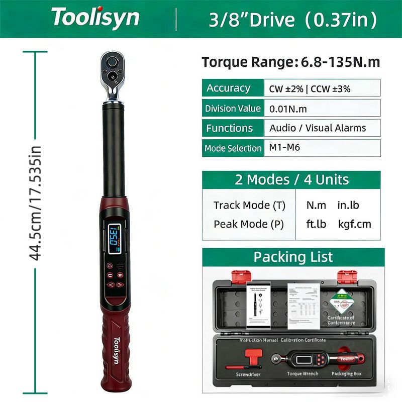 The Toolisyn digital torque wrench is engineered for precision. Each wrench is rigorously tested over 10,000 cycles within a ±2% tolerance, guaranteeing reliable and consistent torque output that meets or exceeds industry standards. It's the trusted choice for demanding mechanics, engineers, and meticulous DIYers.