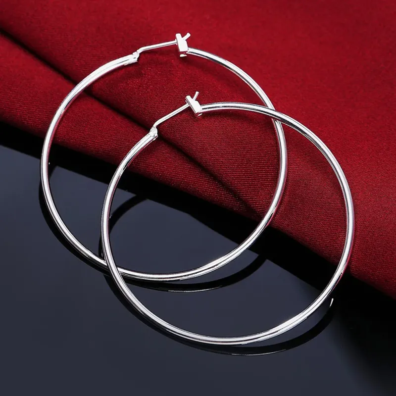 Top Quality 925 Sterling Silver Earrings Simple Round Circle Hoop Earrings For Woman Fashion Wedding Engagement Charm Jewelry