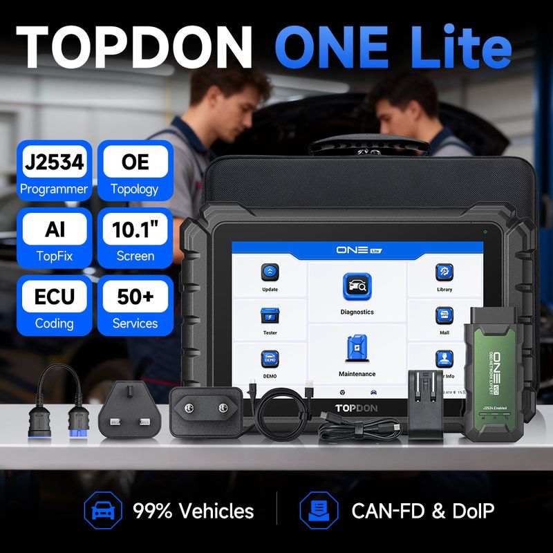 AutoVIN & AutoScan + All Available System Access : This powerful, all-in-one diagnostic scan tool reads and erases codes, views live data, retrieves ECU version info, and performs active tests and service functions across every system—ECM, TCM, ABS, SRS, BCM, BMS, TPMS, SAS, Fuel System, Light System and A/C system and more. The AutoVIN & AutoScan features allow the TOPDON ONE LITE scan tool to automatically connect with all available ECU modules across onboard systems, performing a full scan to pinpoint faults and getting instant identification and diagnostics