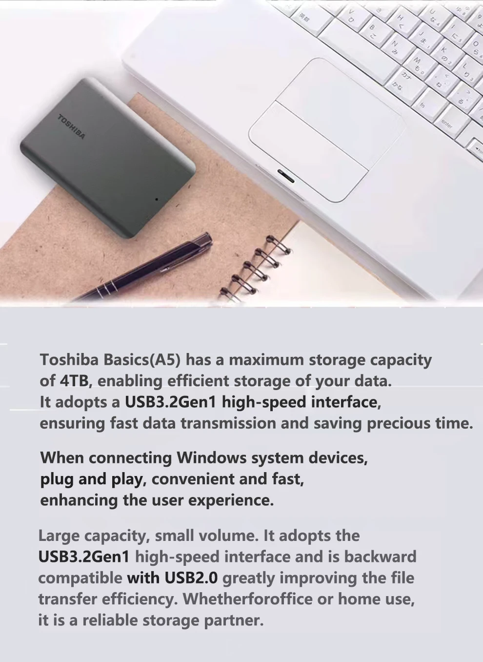 Toshiba A5 Series Small Black Portable Hard Drive, High-Speed USB 3.2