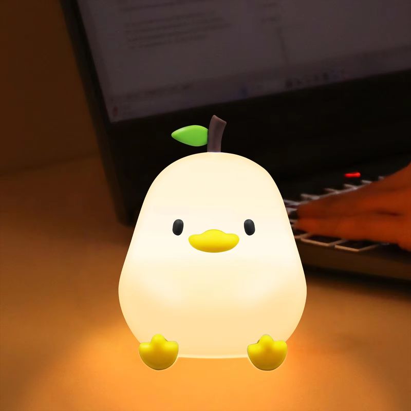 Touch Sensor RGB LED Night Light Cute Pear Duck Hamster Silicone Lamp for Kids USB Rechargeable Bedroom Bedside Lighting