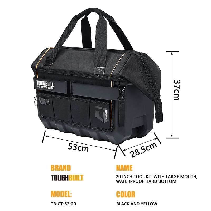 TOUGHBUILT 12 inch/16 inch/20 inch large opening waterproof hard bottom tool kit, zipper sealed, storage bag TB-CT-62-12/16A/20