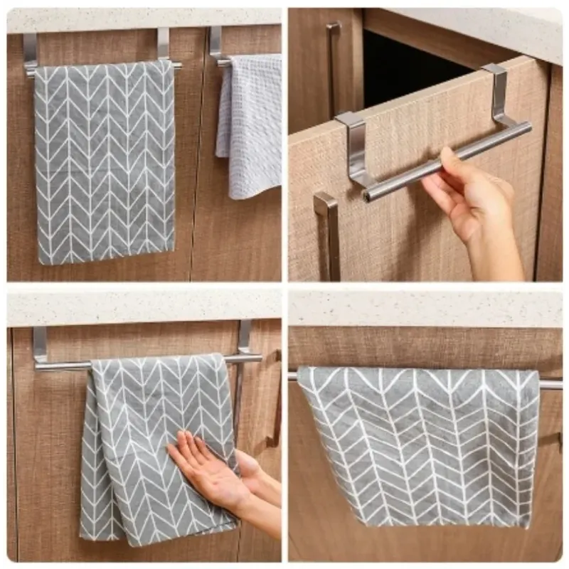 Towel Rack Over Door Stainless Steel Towel Bar Storage Organizer Bathroom Kitchen Cabinet Door Hanging Towel Rack