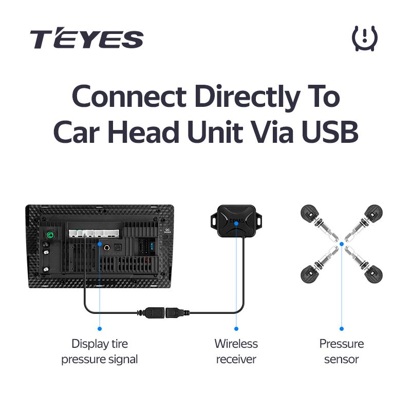 TPMS Car Auto Wireless Tire Pressure Monitoring System only for TEYES devices Built-in battery