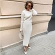 Tracksuit Women's Knitted Sweater Skirt Two Piece Set Apricot