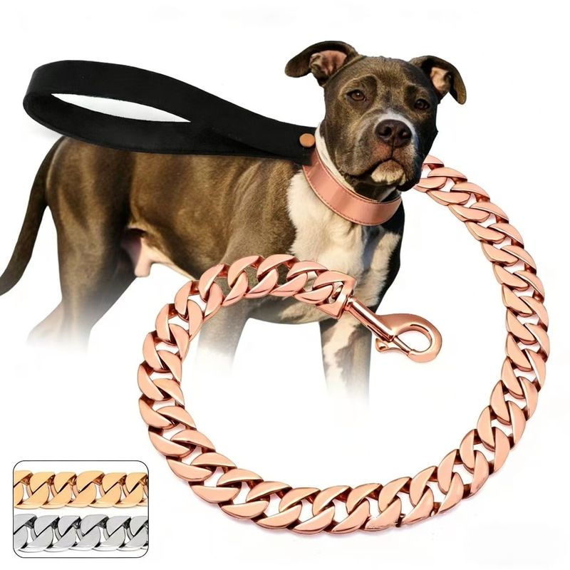 Stainless Steel Gold Dog Chain Leash Super Strong Dog Metal Durable Silver Traction Rope Chain Solid For Pet Jewelry Accessories