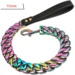 Who needs this leash? : Do you have a dog that likes to bite? If so, then this collar is perfect! The deluxe Cuban chain leash looks cool on both male and female dogs. 32mm wide, 24" to 48" long, can be used with stainless steel metal collars. For large active breeds such as Rottweilers, Pit Bulls, American Bulldogs, German Shepherds, Huskies, Newfoundlands, Belgian Malinois, Saint Bernards and English Bulldogs, it can handle rough Variety.