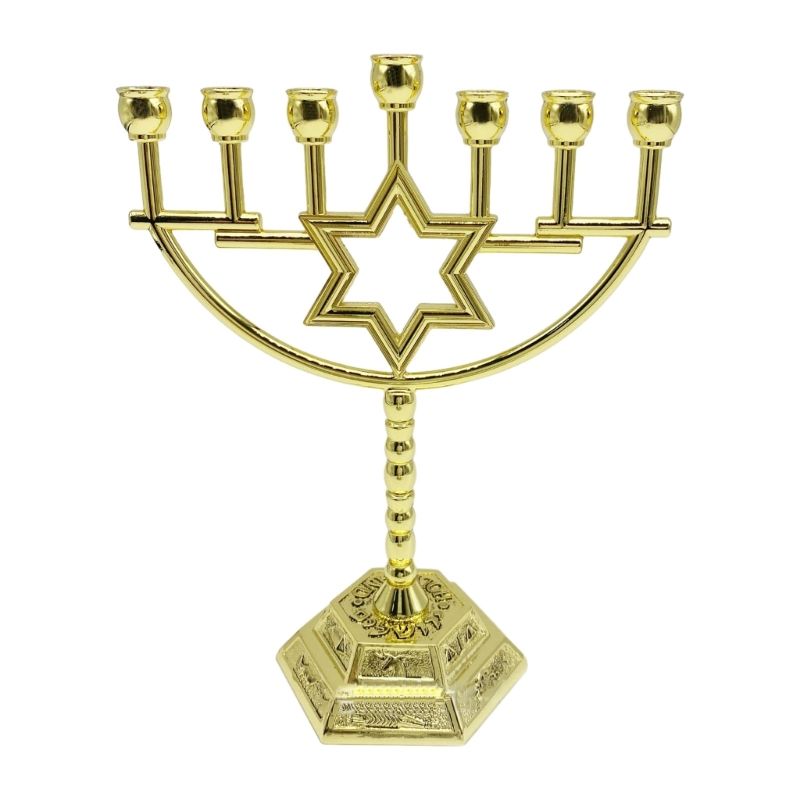 Traditional Jewish Menorah 7 Branch Jerusalem Temple Holder Decoration