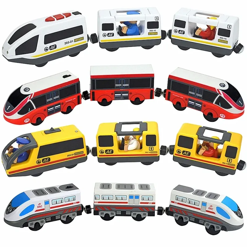 Train Track Wooden Train Toys Magnetic Set Electric Car Locomotive Diecast Slot Fit All Wood Brand Biro Railway Tracks For Kids