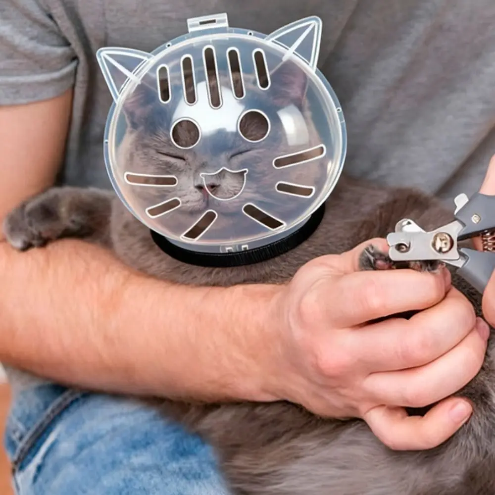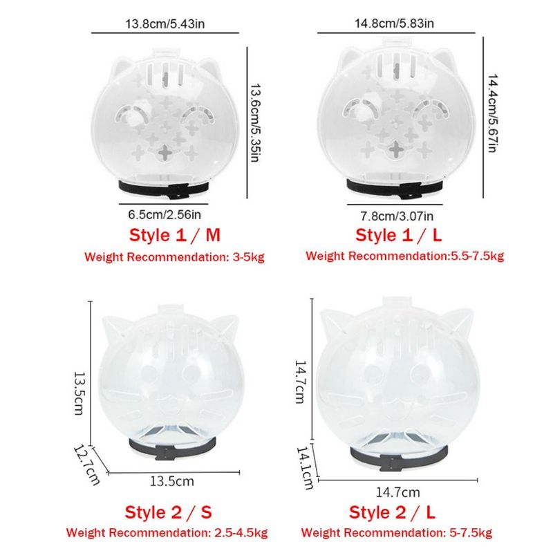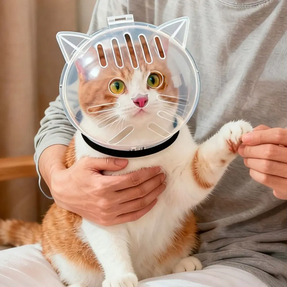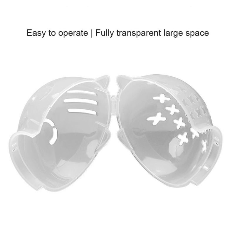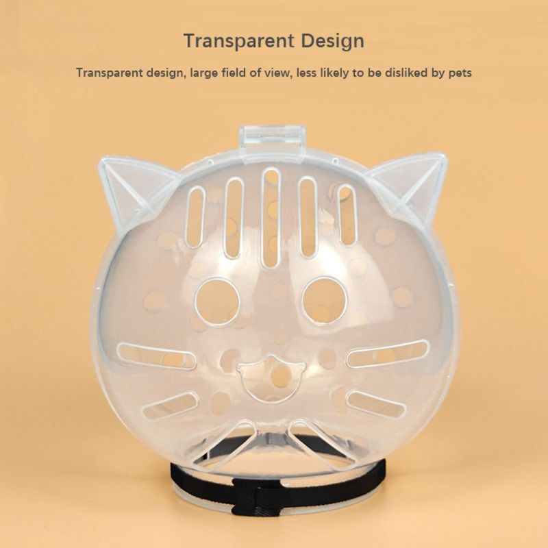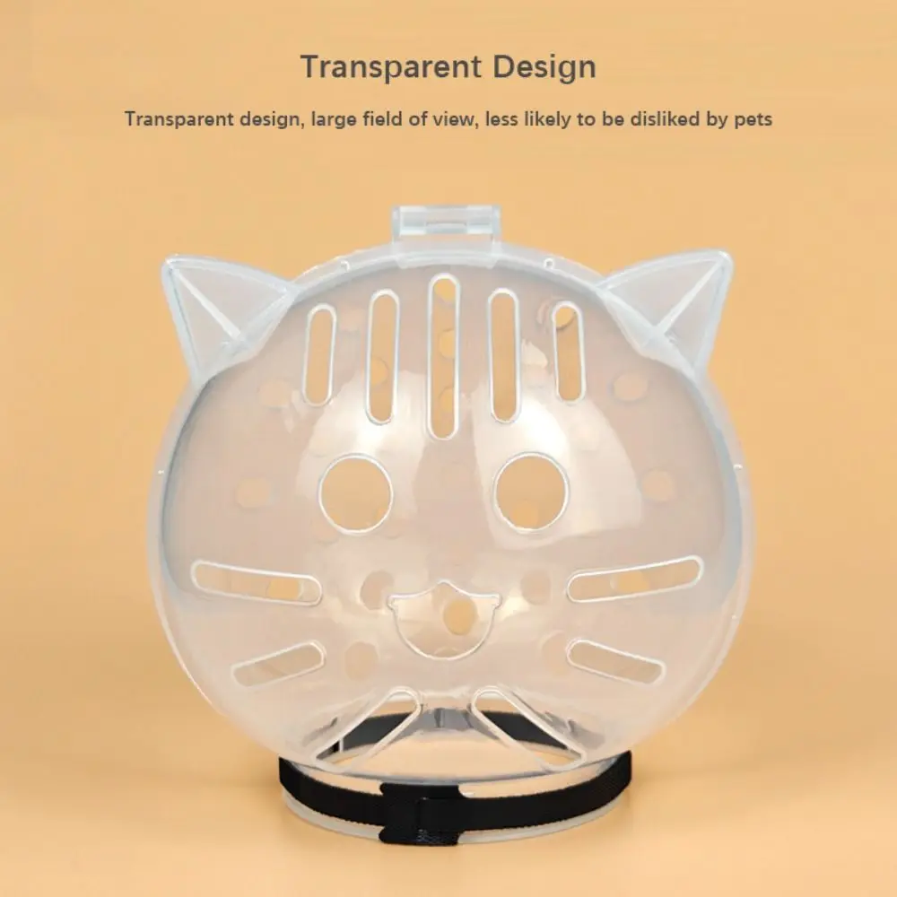 360° Transparent pet cat muzzle, large space, open view, comfortable to wear, easy to open/close.