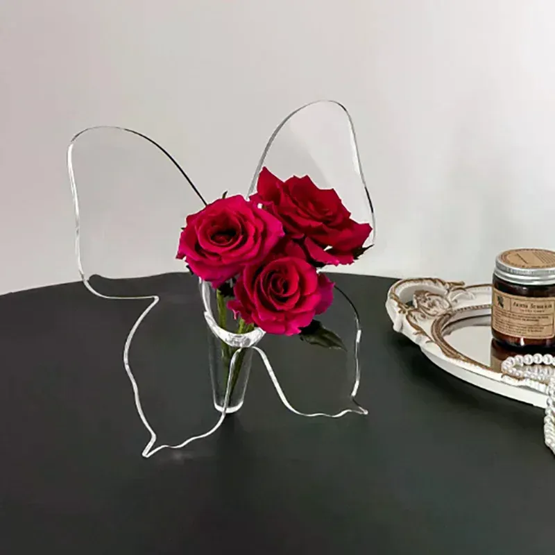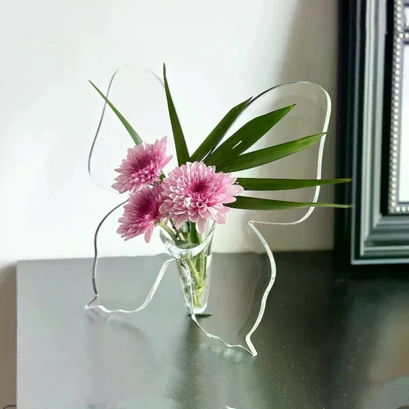 1. Unique design: Acrylic butterfly vase design is unique, combined with the elements of the butterfly, the visual effect is very attractive, whether as a home decoration, or gifts are very suitable choice.