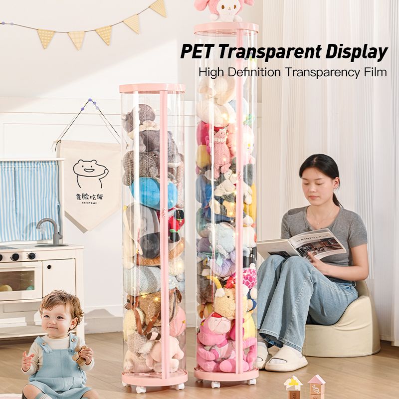 Transparent Doll Storage Box Plush Toy Circular Organization DIY Zipper Storage Tube Children's Toy Organizer Kid Christmas Gift