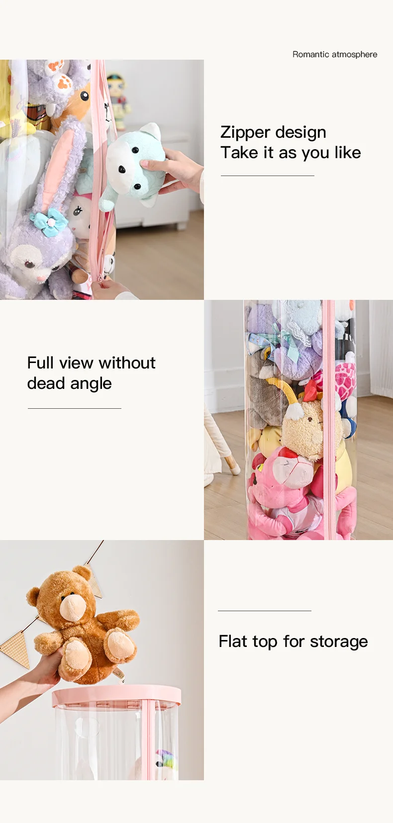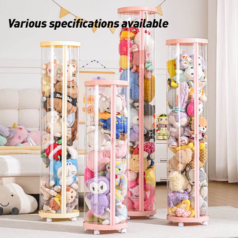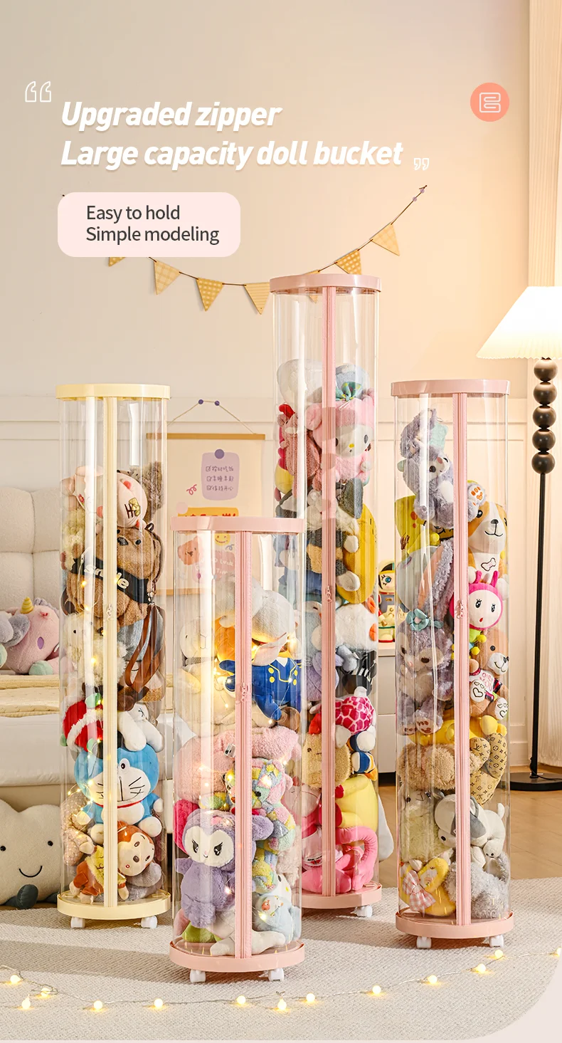Transparent Doll Storage Box Plush Toy Circular Organization DIY Zipper Storage Tube Children's Toy Organizer Kid Christmas Gift
