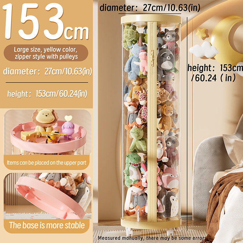 Transparent Doll Storage Box Toy Organization Plush Toy Storage Tube Children's Toy Organizer DIY Zipper Bins Kid Christmas Gift