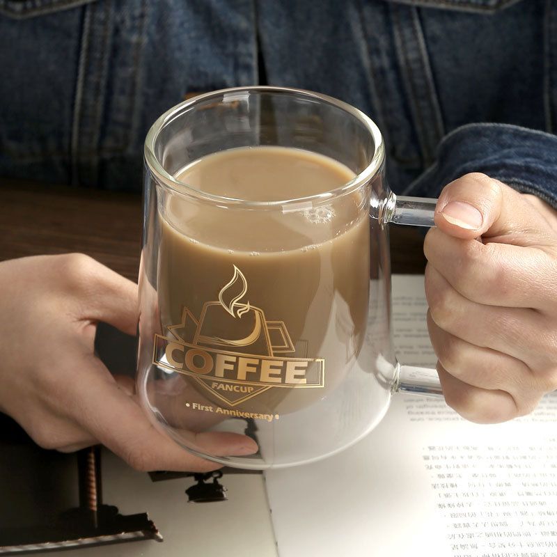 Transparent Double Insulated Coffee Cup With Handle C 300ml