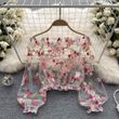 Transparent Embroidered Lace irt Women Summer Loose Bubble Sve ort Cover up Long Sve Me Blouse Korean Sle Commute