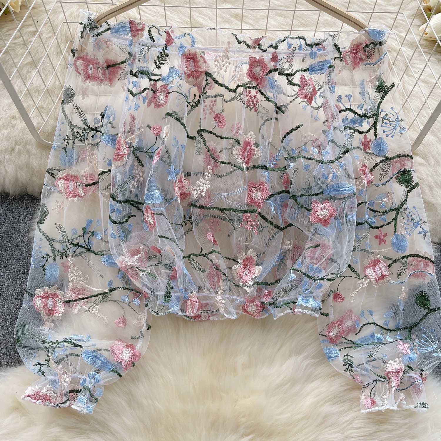 Stay cool in summer with this long-sleeve lace shirt, offering both comfort and elegance.