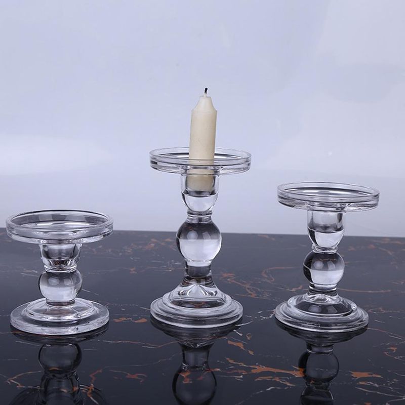 Transparent Glass Candlestick Holders, Crystal Candle Holders Pillar Stand, Gift for Birthday Christmas, Wedding Home Decor