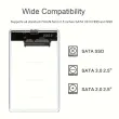 Supports all standard 7mm/9.5mm 2.5 inch SATA I/II/III HDD and SSD up to 2TB(Max)