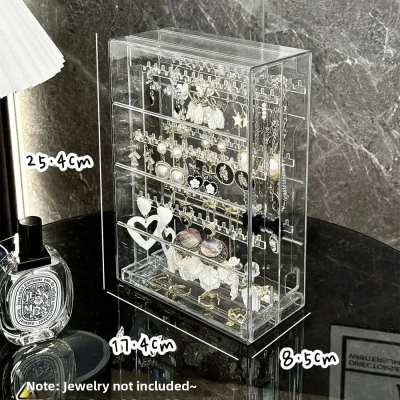 Transparent Jewelry Box Ring Earring Necklace Keychain Acrylic Display Organizer Case Dustproof Large Capacity Travel Women Girl